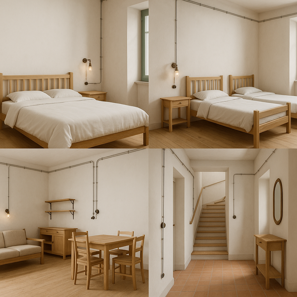 Spazi essenziali e curati, colori neutri e dettagli in legno per un comfort discreto. Ogni camera dispone di bagno privato con piccole attenzioni che fanno la differenza.
