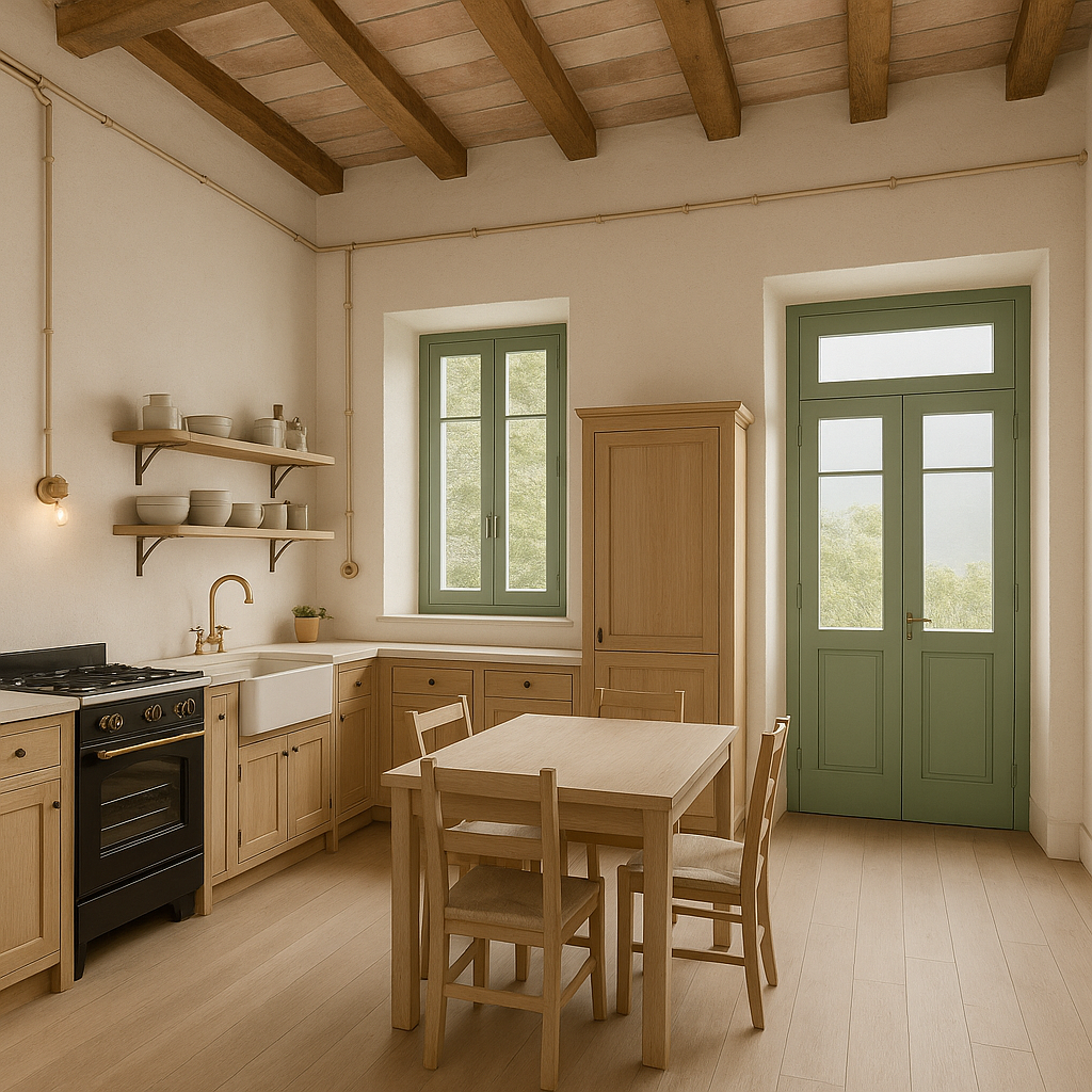 Spazio ampio e luminoso, affaccio su querce e ulivi, accesso diretto alla veranda per colazioni lente all'aperto. Materiali naturali, profumi di campagna, ritmo lento del Borgo. Ideale anche per una terza persona o culla. Senza TV e senza Wi-Fi, per una quiete piena.